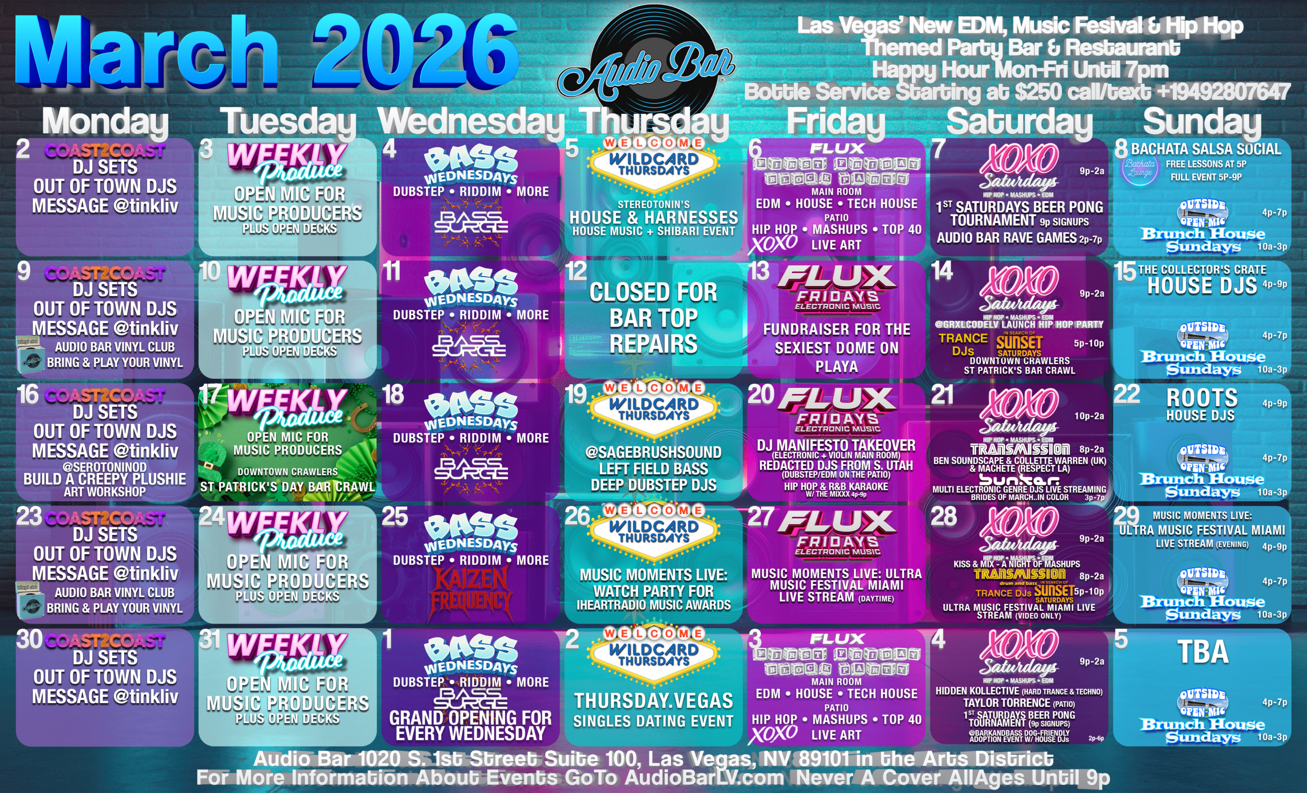 Event Lineup at Audio Bar
